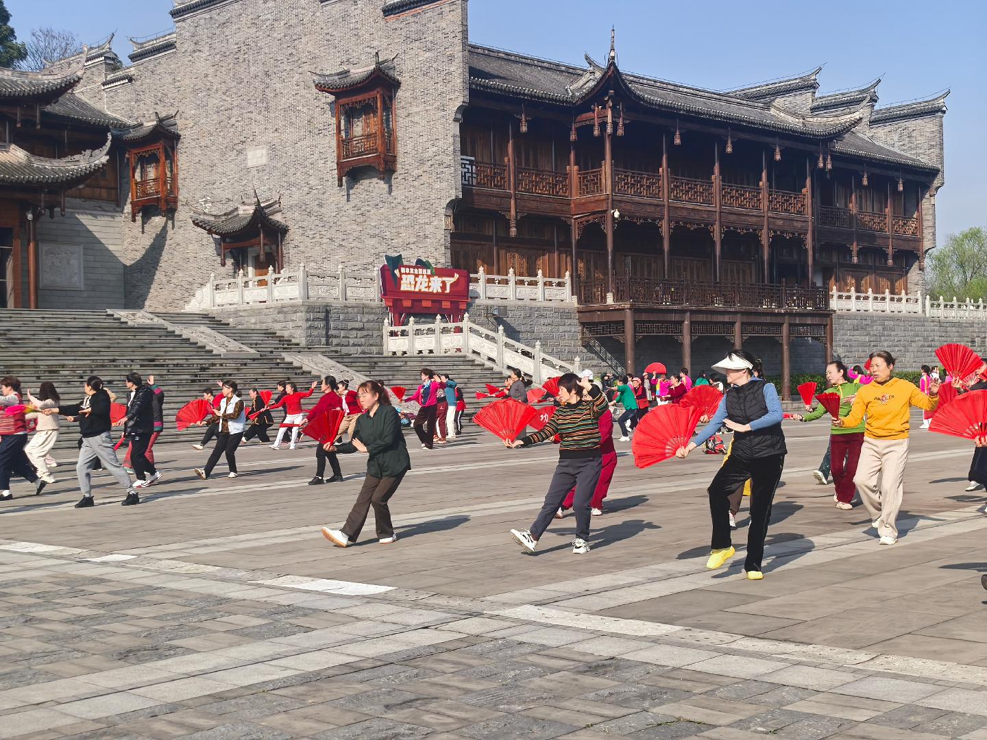 重庆园博园优美的自然风光和完善的基础设施也让园博园成为开展活动的绝佳场所。康复会会员在主入口广场,开展太极扇表演活动,太极扇是一种融合了太极拳、武术和舞蹈动作的健身项目,充满了飘逸潇洒的美感与武术的阳刚威仪,兼具观赏性和艺术性。会员们跟随太极扇老师学习一招一式,聚精会神间展现蓬勃的朝气。伴随着太极扇的一开一合,一道靓丽的风景线自然而成。