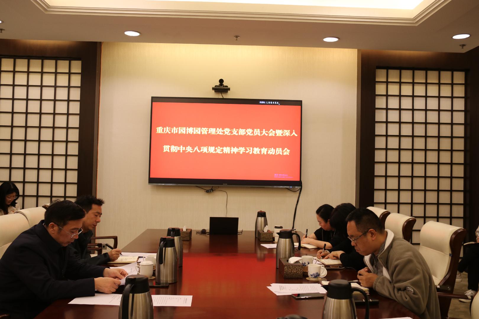 为切实开展好“深入贯彻中央八项规定精神学习教育”,持续深化党的创新理论武装,3月28日上午,重庆市园博园管理处党支部在一楼1会议室召开动员大会,会议由园博园管理处党支部书记刘永红主持,管理处领导班子成员、全体党员干部职工参会。