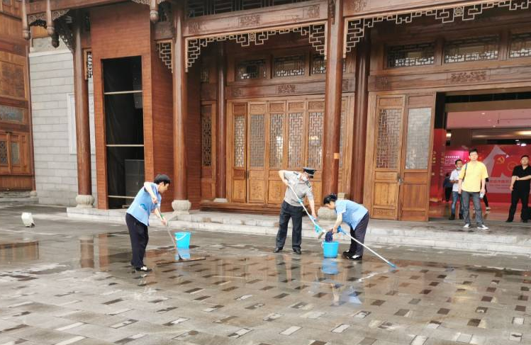 二是注重环境细节。在科技周开幕的前一天,对会议室、二楼展厅进行全面、细致的保洁。为防止遗漏,同时不影响布展工作,重庆园博园组织保洁人员延迟下班时间,在所有布展单位结束布展完成后,对展厅再次进行检查,清理遗漏的垃圾。