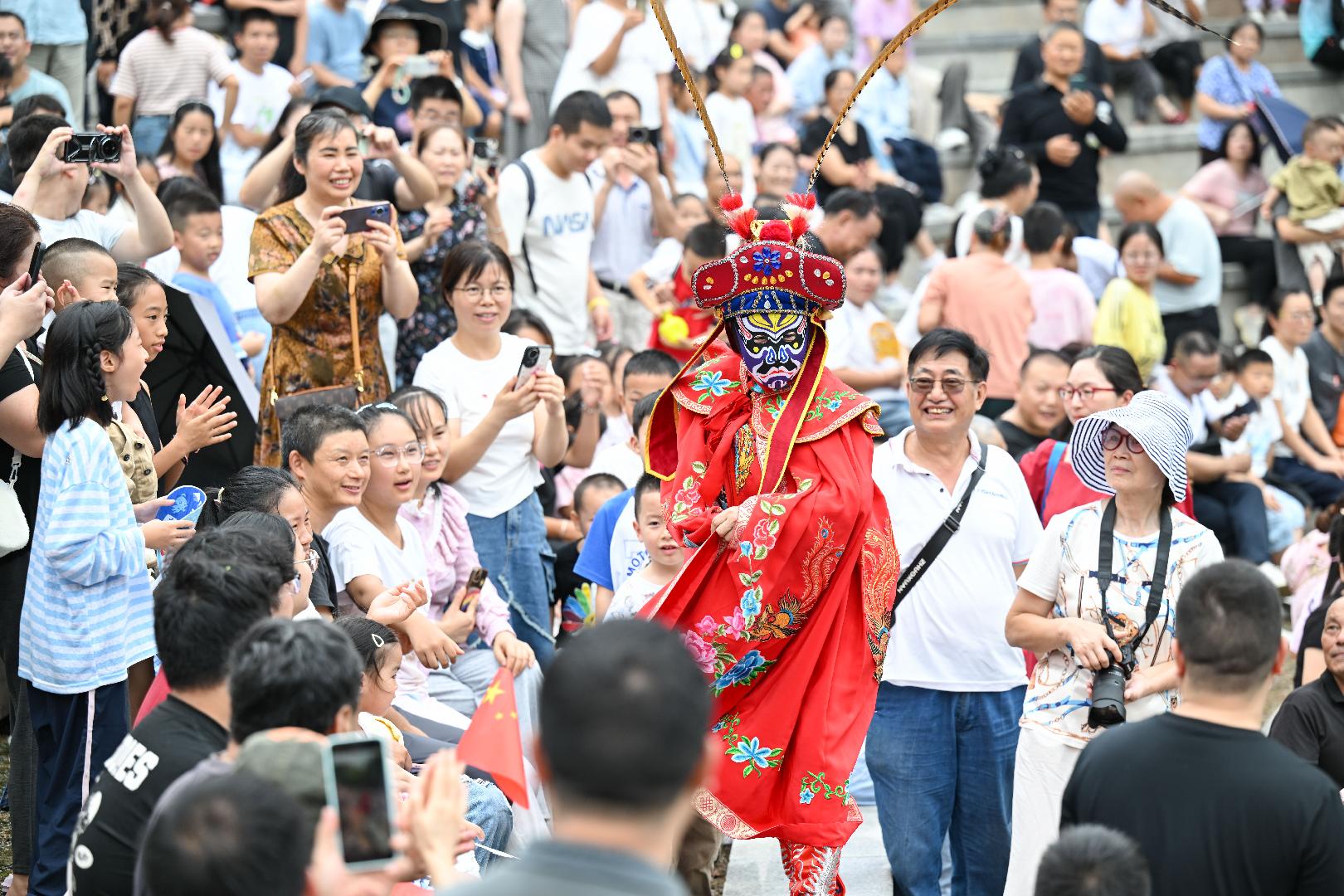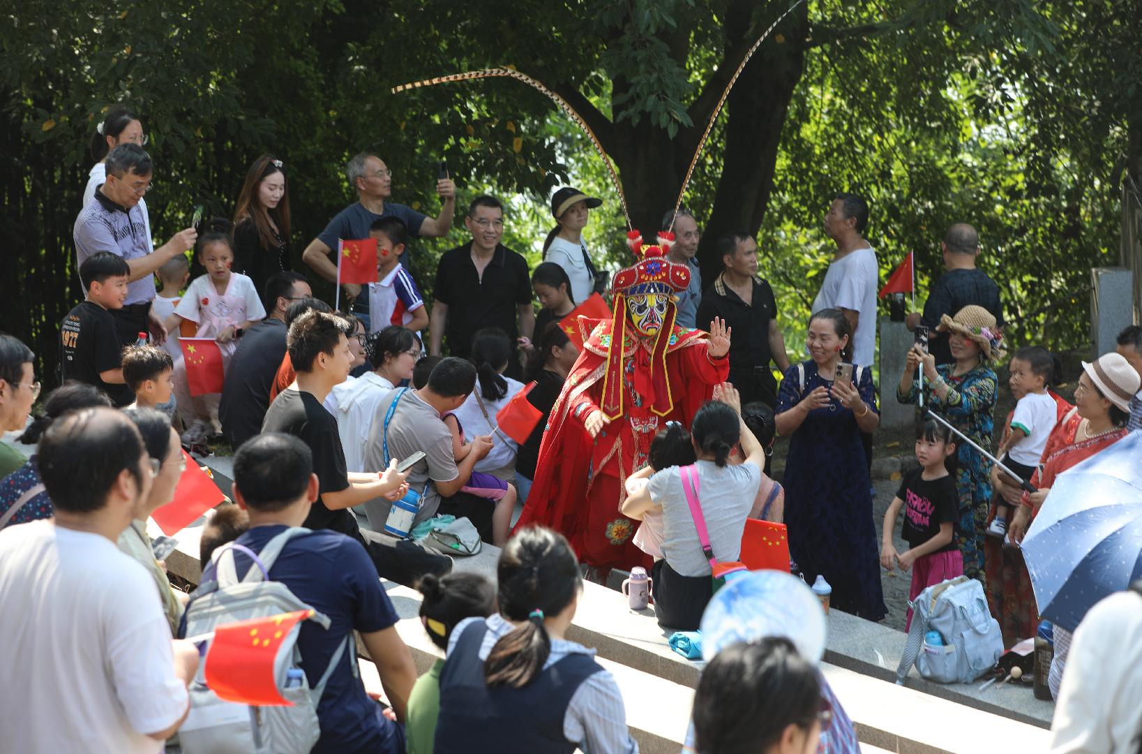 游客们与川剧演员互动
