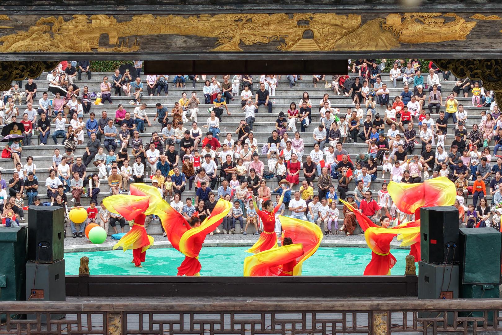 园内精彩纷呈的文艺汇演,吸引了大量游客驻足流连
