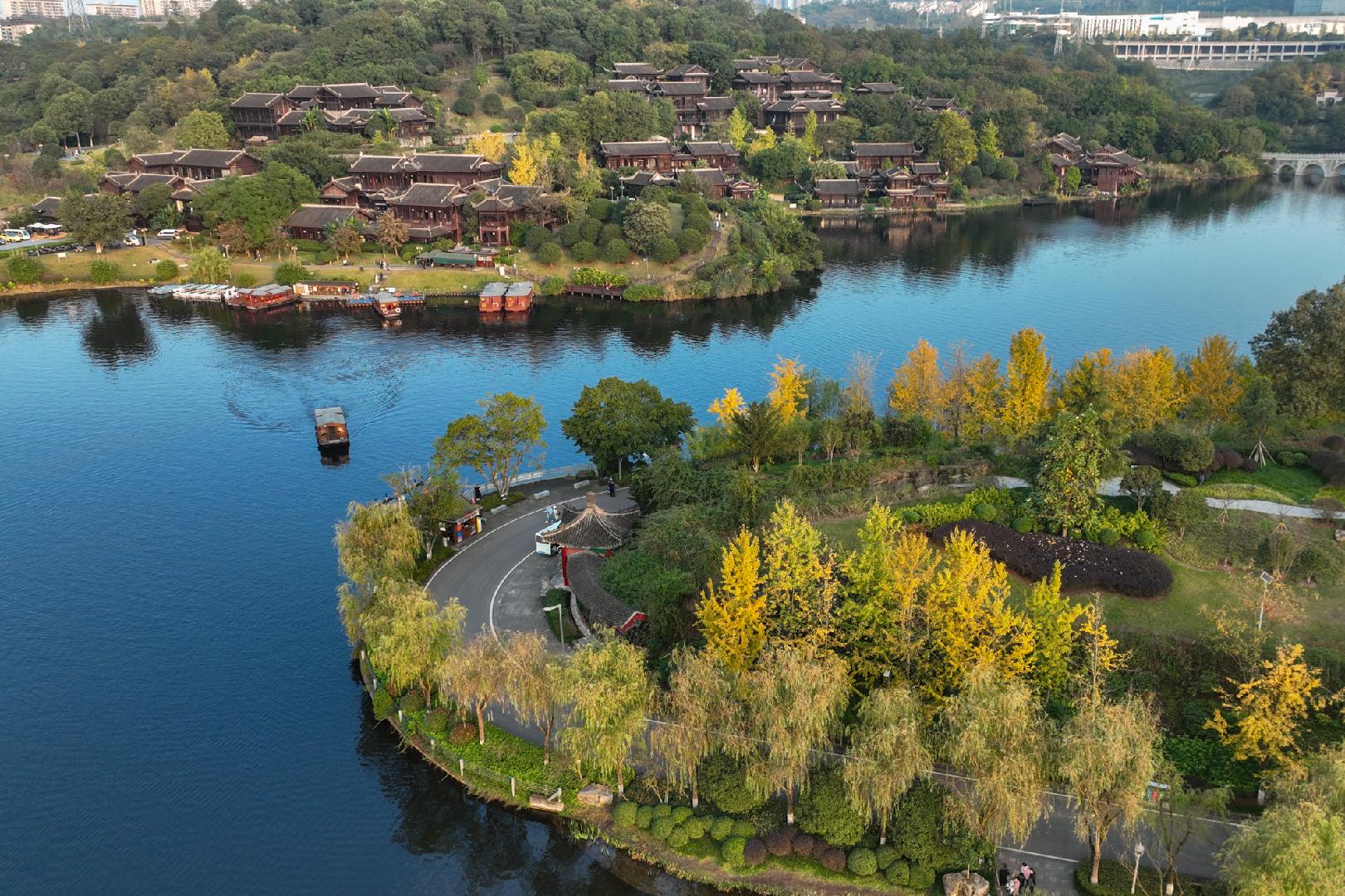 11月至12月,在钓鱼基地附近,园区环湖沿线,成片水杉渐次染上秋色,与湖水相映,静谧如诗,定格成这个季节最温柔的倒影;在环湖沿线、现代园、巴渝园、江南园等区域,红枫似火,层林尽染,秋意浓烈如画,美得令人心醉神迷,为秋冬交接之际添上最温暖的一笔;行走于卧龙石至现代展园一带,两侧的法国梧桐叶片开始渐次转色,从翠绿到金黄,再到深红,层层叠叠,美不胜收;主广场两侧及环湖沿线,银杏大道一片金黄,抬眼望去,满树灿烂,犹如天边升起的金色霞光。