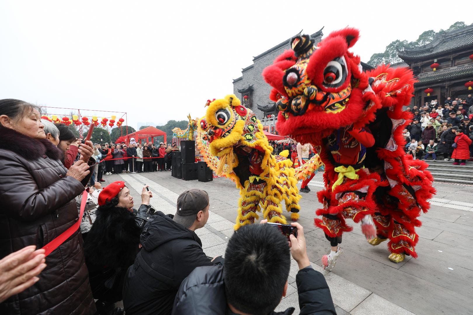 爆竹声声辞旧岁,张灯结彩迎新春。大年初一,重庆园博园春光明媚,湖光山色间喜气洋洋,红灯高挂,彩旗飞扬,游人如织,欢声笑语不断。舞龙舞狮腾跃翻腾,川剧变脸精彩上演,非遗民俗轮番登场,美食香气弥漫全场……市民游客沉浸在一片喜庆热烈的节日氛围中,感受着浓浓的巴渝年味。