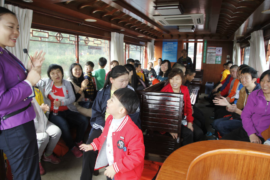 欣赏完各种各样的菊花后,孩子们乘坐画舫船欣赏园博园的美丽风景。这些孩子还来到重庆园博园的冰雪乐园里游玩,他们玩滑雪、体验爱斯基摩冰屋,在游玩中尽情感受到快乐。