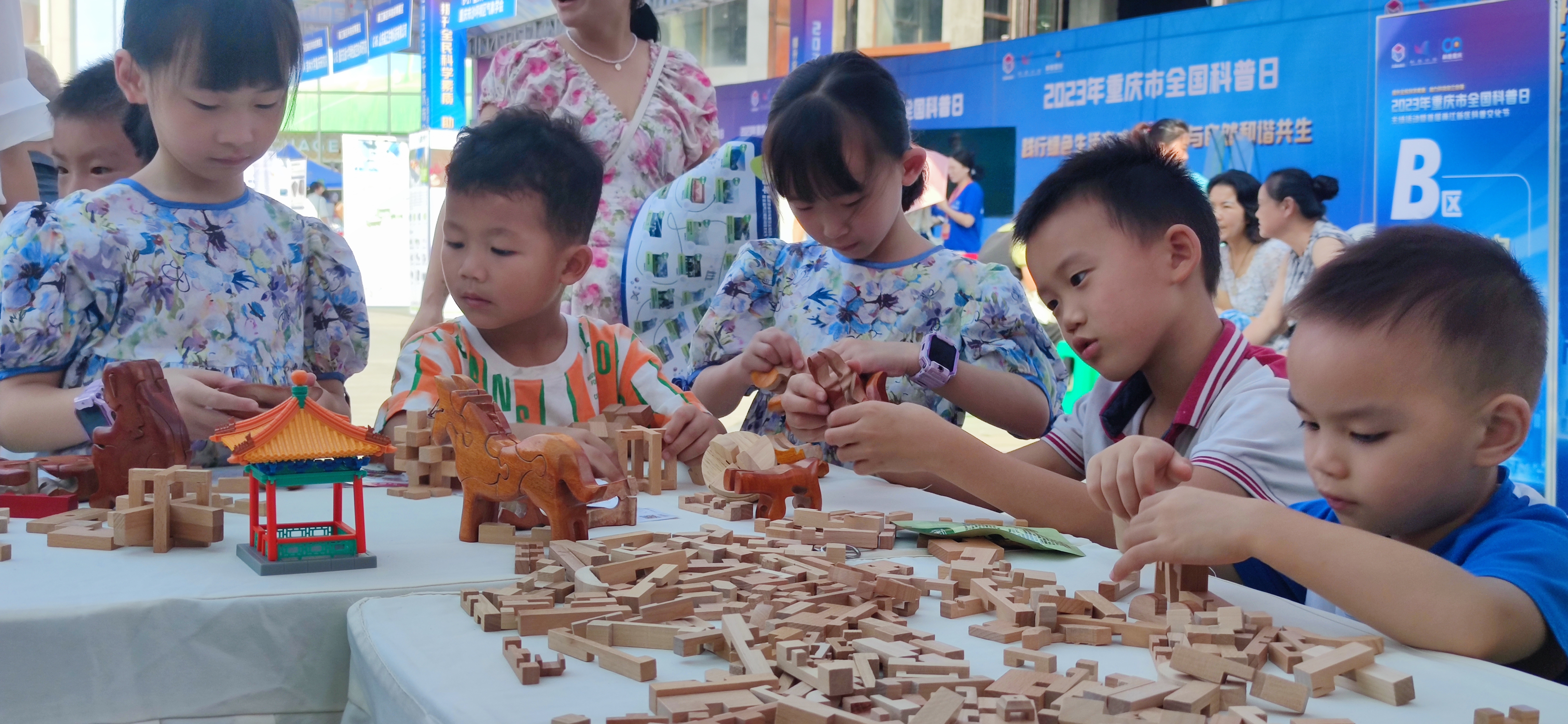 重庆园博园作为国家生态环境科普基地、重庆市科普教育基地、重庆市研学旅行示范基地、“科普重庆”共建基地和重庆市两江新区中小学社会实践教育基地,积极参与主会场科普助力“双减”展区活动,以“领略园林之妙 共享生态之美”为主题,将公众介绍中国古典建筑中的榫卯。