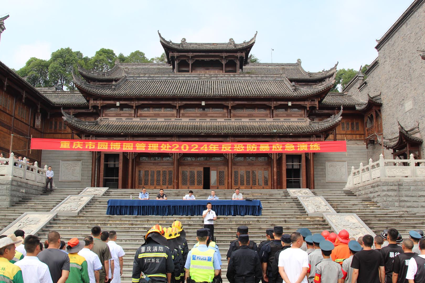 为进一步检验《重庆园博园应对处置反恐怖事件预案》实用性和可操作性,提高园区反恐防暴意识和应急处置能力,确保园区安全稳定。6月17日上午,重庆园博园联合两江新区公安分局、鸳鸯街道办事处、两江新区消防支队等部门共150余人开展2024年反恐防暴演练。市反恐总队、两江反恐支队和两江新区各派出所代表到场观摩指导。