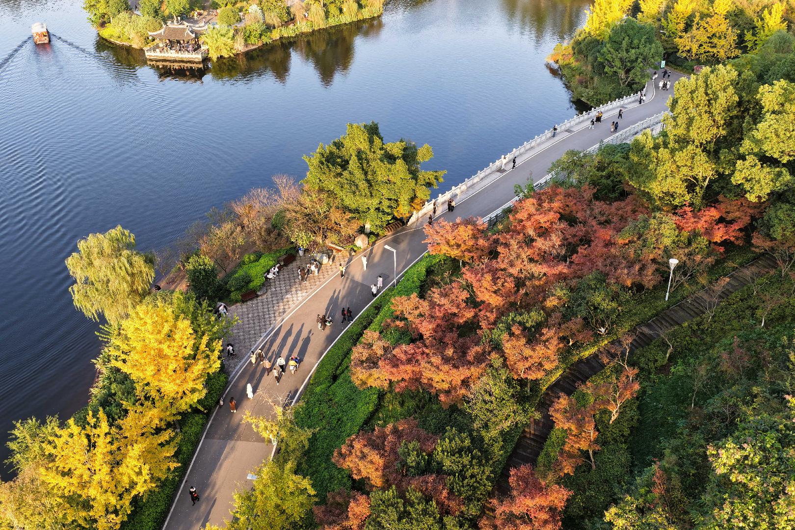 近日,重庆园博园里的各种彩叶在冬日阳光照耀下绚丽多彩,吸引众多市民游客前来打卡游玩。随着气温逐渐下降,重庆园博园里的各种树木叶子纷纷变色,银杏树一片金黄,红枫渐染,梧桐树色彩斑斓,各种彩叶与古典园林风格的建筑交相辉映,美不胜收。(文字来源:中国新闻网)