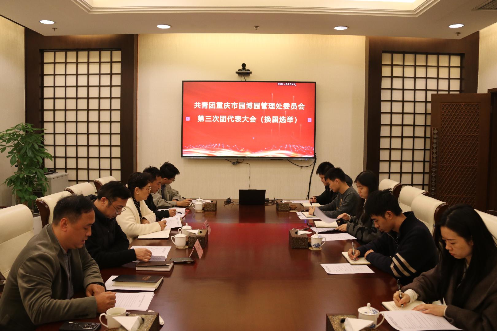 近日,共青团重庆市园博园管理处第三次团代表大会在主展馆1号会议室召开。17名团代表全体参会。